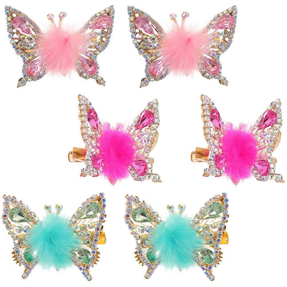 6pcs Children Hair Clips with Flying Butterfly Crystal Hairpins for Teen Girls Accessories