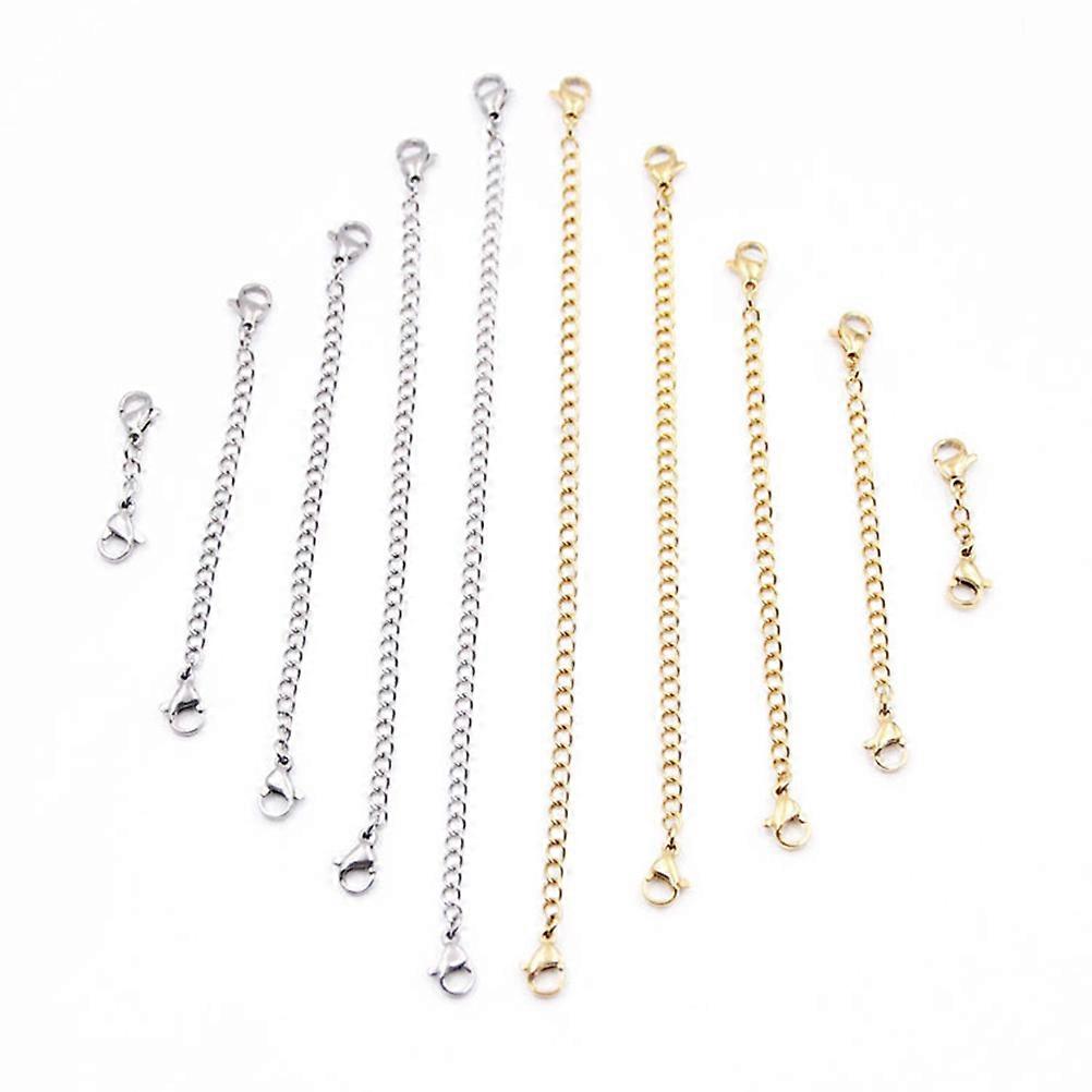 Stainless Steel Necklace Extension Chains with Lobster Clasps – 5pcs Durable DIY Jewelry Making Lengths for Easy Connection and Added Convenience