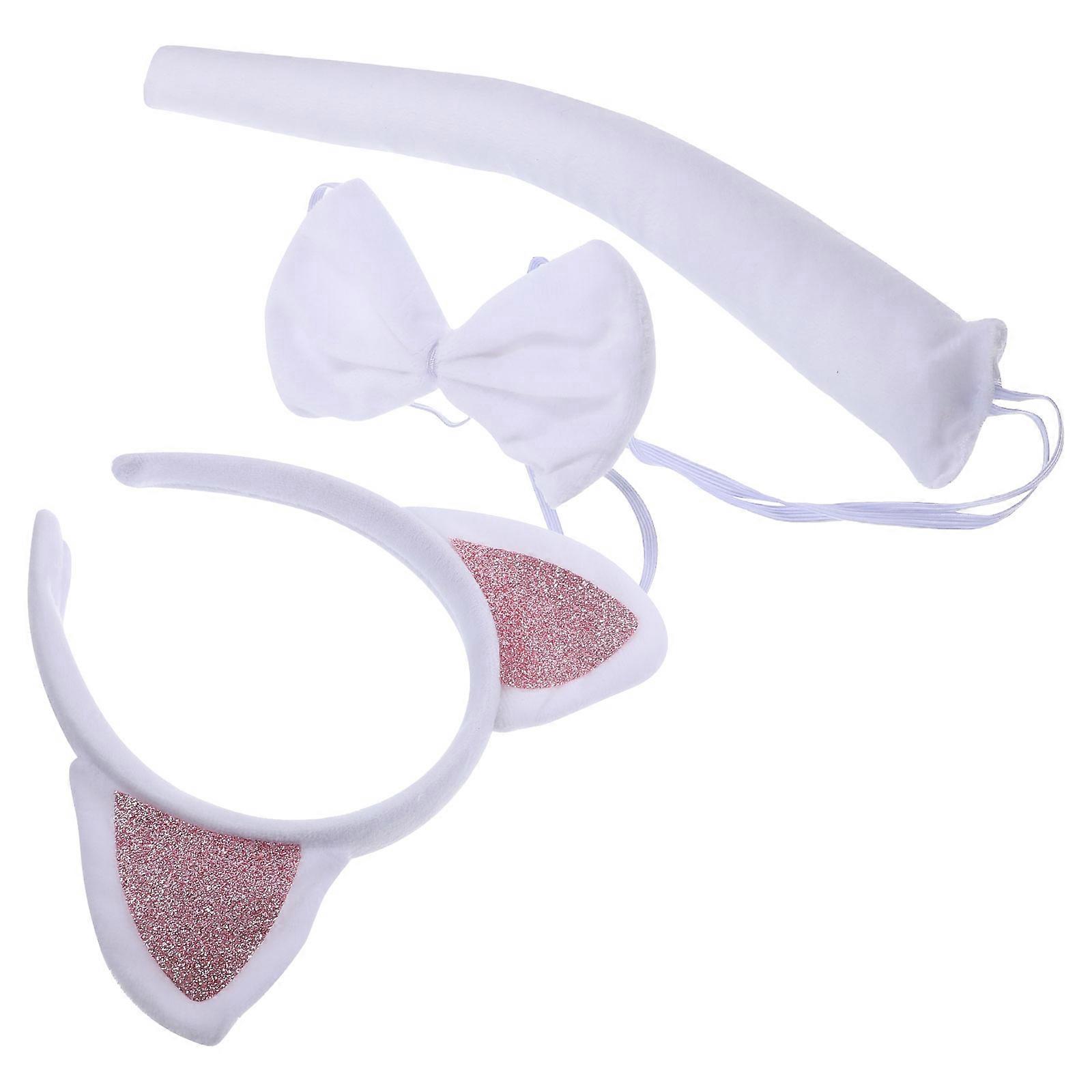 Cosplay Cat Ears Headband and Bow Tie for Party 1Set White Fabric