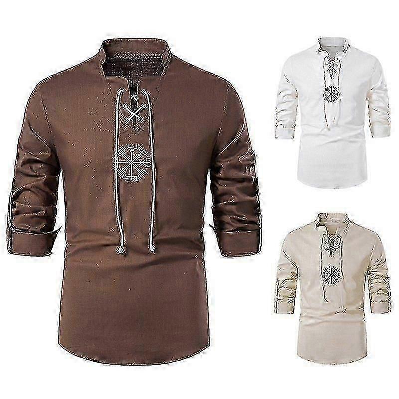 Men's Fashionable Cotton Linen Long Sleeved Shirts hk