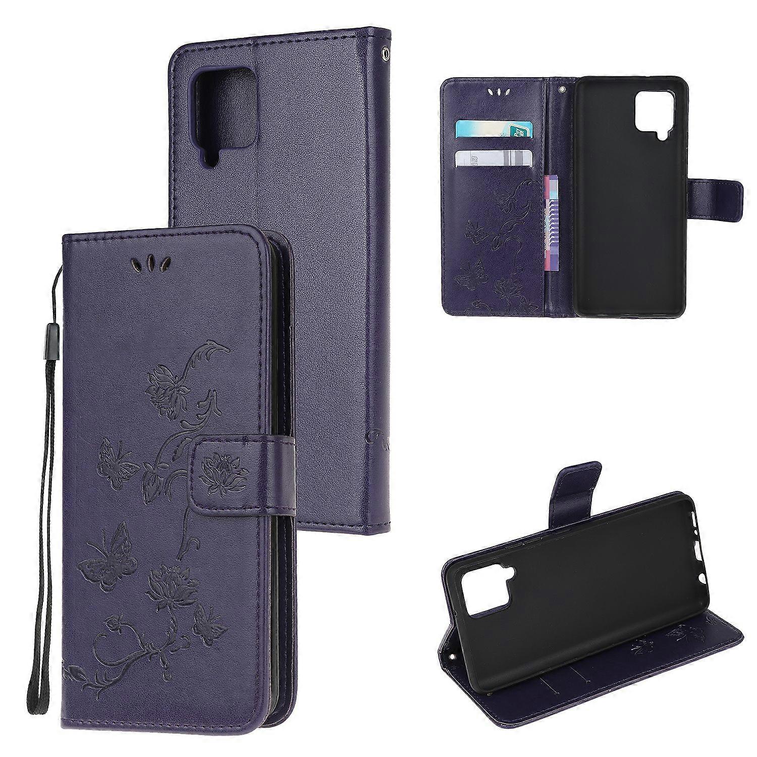 Imprint Butterfly Flowers Leather Wallet Phone Cover for Samsung Galaxy A12 Cell Phone Accessory - D