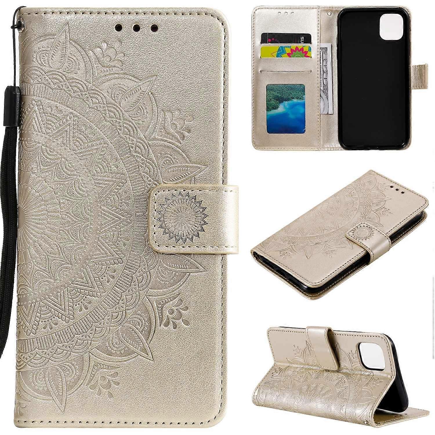 Imprint Flower Leather Wallet Case for iPhone 11 Pro 5.8 inch (2019) - Gold