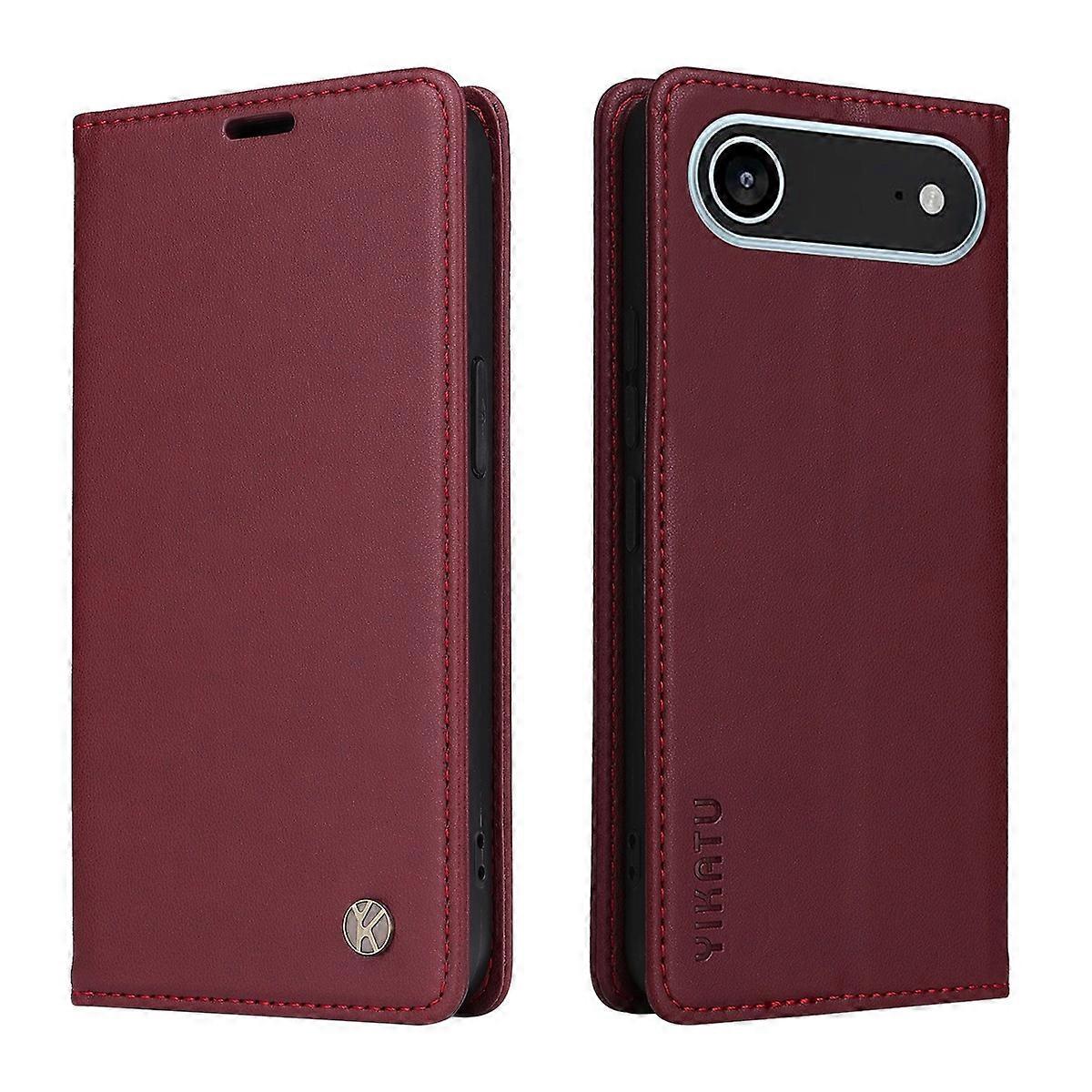 For iPhone 17 Air Phone Cases YIKATU Magnetic Closure PU Leather Mobile Cover - Wine Red