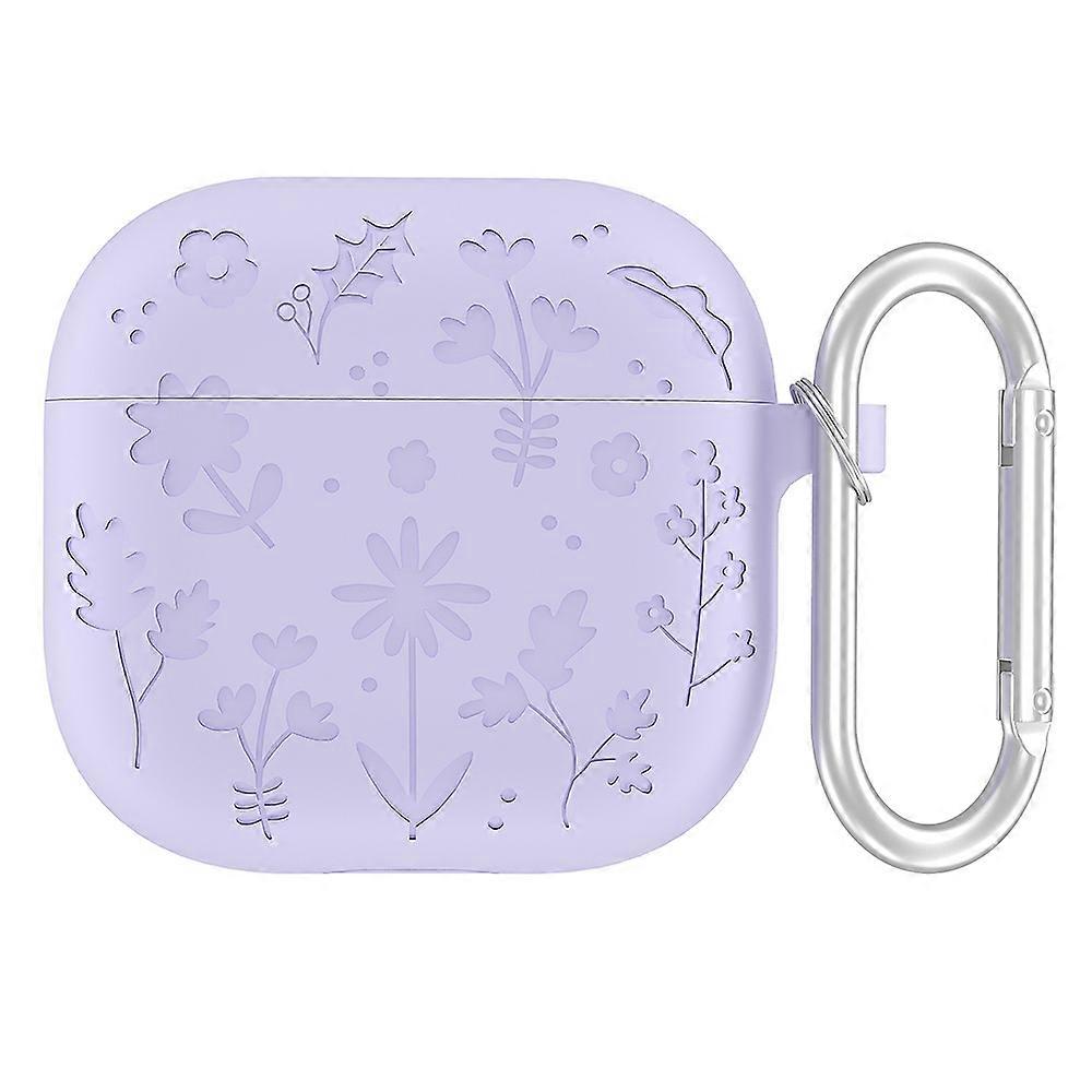 For AirPods 4 Case Floral Pattern Liquid Silicone Earphone Cover with Carabiner - Light Purple