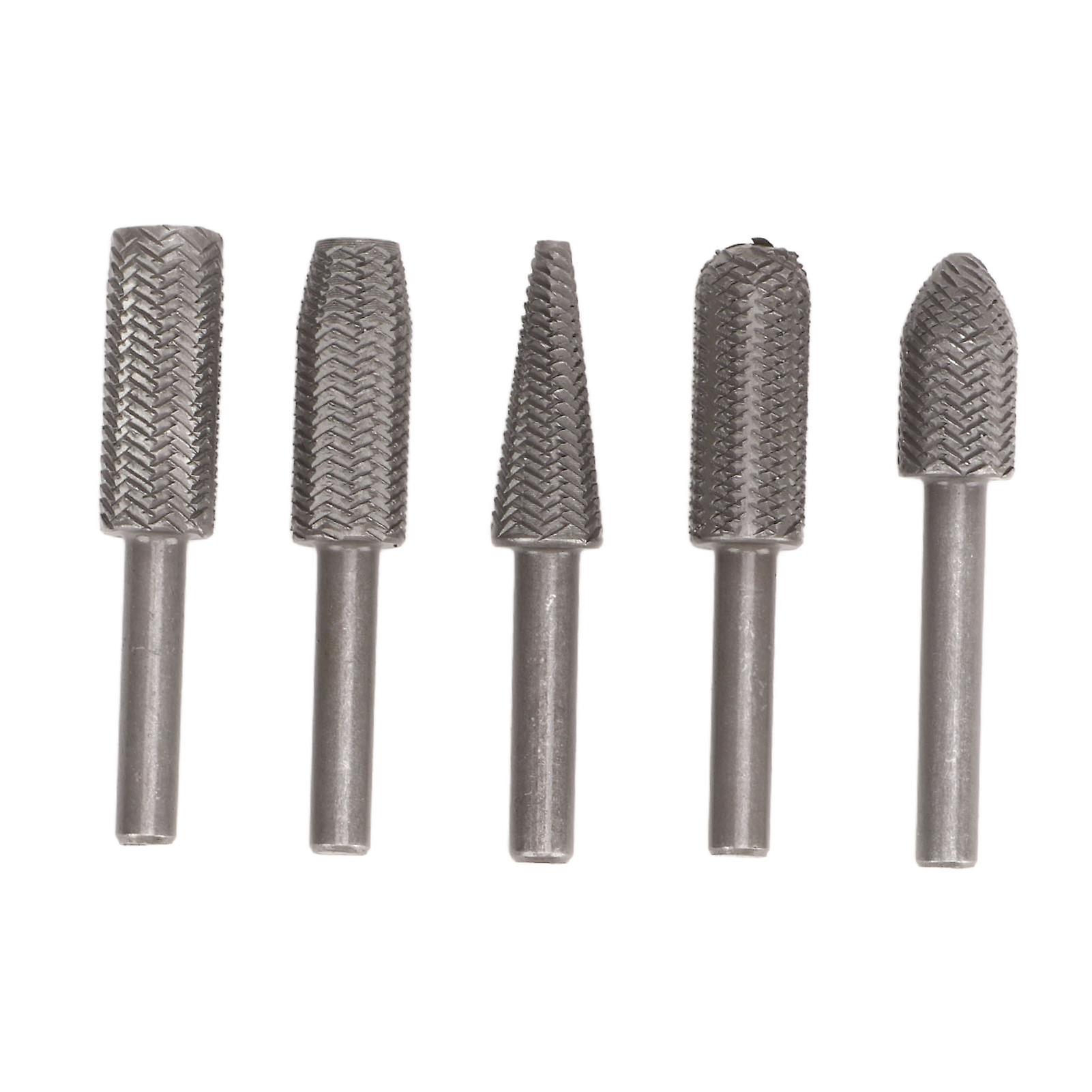 Risegun 5Pcs Die Grinder Bits Tungsten Steel Alloy 6mm Shank Rotary Rasp Files Set for Wood Rubber Deburring Shaping Grooving