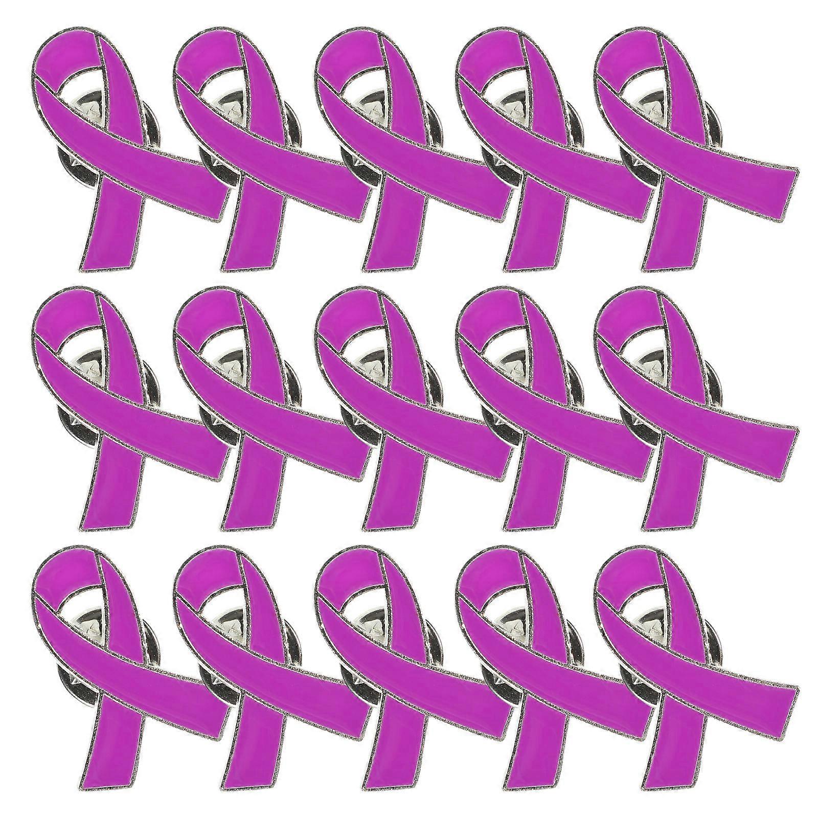 Purple Awareness Ribbon Brooch Pins for Decoration Charity Promotion Peace Sign 30 Pieces Small Size