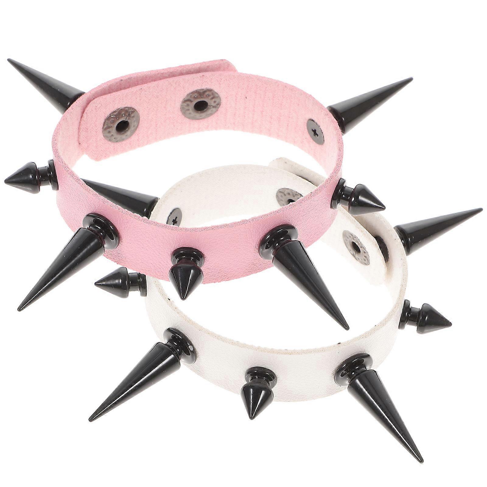 Adjustable Punk Jewelry Cuff Bracelet Designed For Hip-Hop Performances With Unique Spiked Look 2Pcs