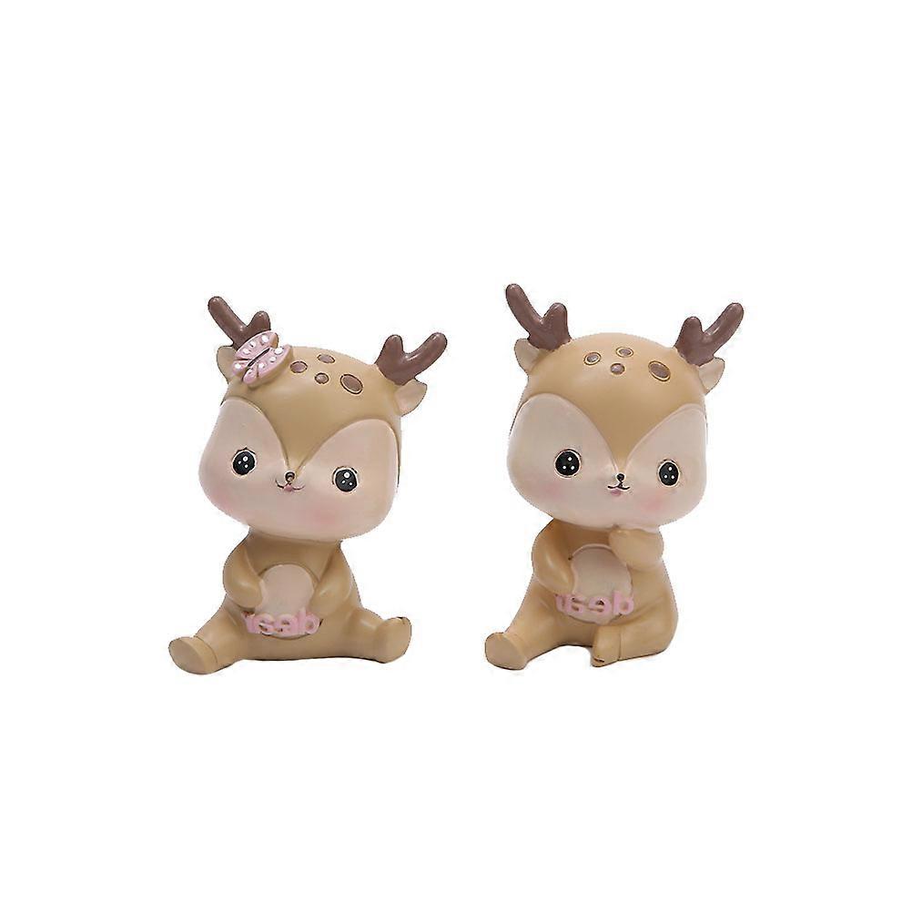 Cartoon Deerlet Cake Decoration 2Pcs Resin Craft for Home Ornament Use