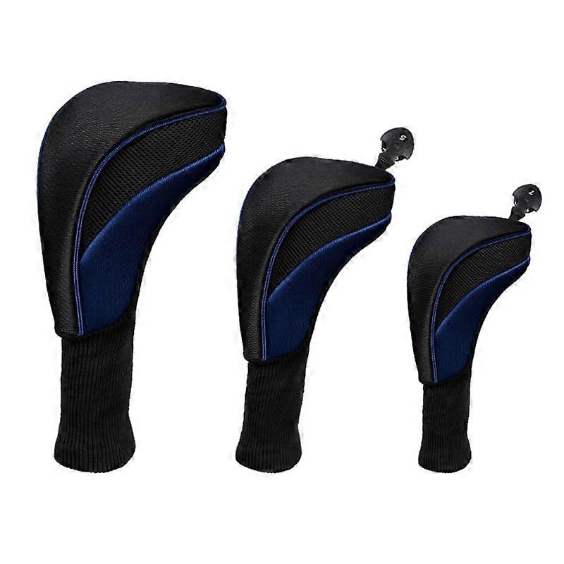 Golf Club Head Covers 3-Piece Set for Fairway Woods and Driver Hybrids Long-Neck Mesh Blue