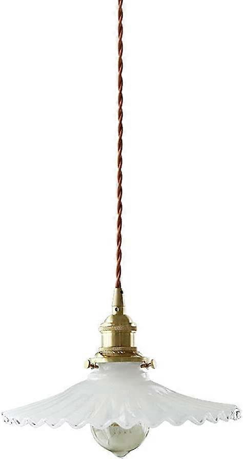 Nordische Dekoration Rustic White Pendant Light For Kitchen Island With Milk Glass Copper Plisse Shade E27 Adjustable