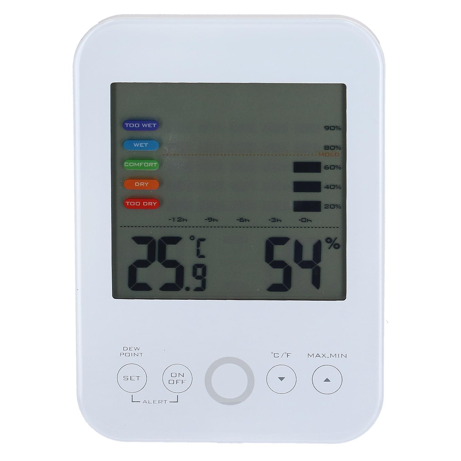 Features High Accuracy: Ensures high accuracy, this temperature and humidity monitor can measure and display real time date with small error. Record Function: The maximum and minimum values can be stored and displayed, and an alarm will be issued if the record exceeds the upper and lower limits set by yourself. Touch Screen: Touch screen together with clear panel adds more convenience to the operation, making your daily life more enjoyable. Back Lighting: Backlight function enables easier reading in the dark, which makes it much easier to build a more comfortable night. Easy Placing: Adopt desktop placing and wall mounted design, convenient installation function, suitable for various types of rooms. Specification: Item Type: Hygrometer Thermometer Model: TS-E02-W Material: ABS Display Size: Approx. 120 x 85 x 20mm / 4.7 x 3.3 x 0.8in Power Supply Mode: 2 x AAA battery (not included). Update Rate: Real Time Update Temperature Range: 0-50 (℃) (error: ±1℃) Humidity Range: 20%-95% (error ±5%). Package List: 1 x Hygrometer Thermometer 1 x User Manual Package List 1 x Hygrometer Thermometer 1 x User Manual
