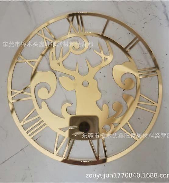 Round Reindeer Acrylic Mirror Wall Sticker with Roman Numerals 25 cm DIY Clock for Living Room Hotel Entryway Reflective Surface Golden