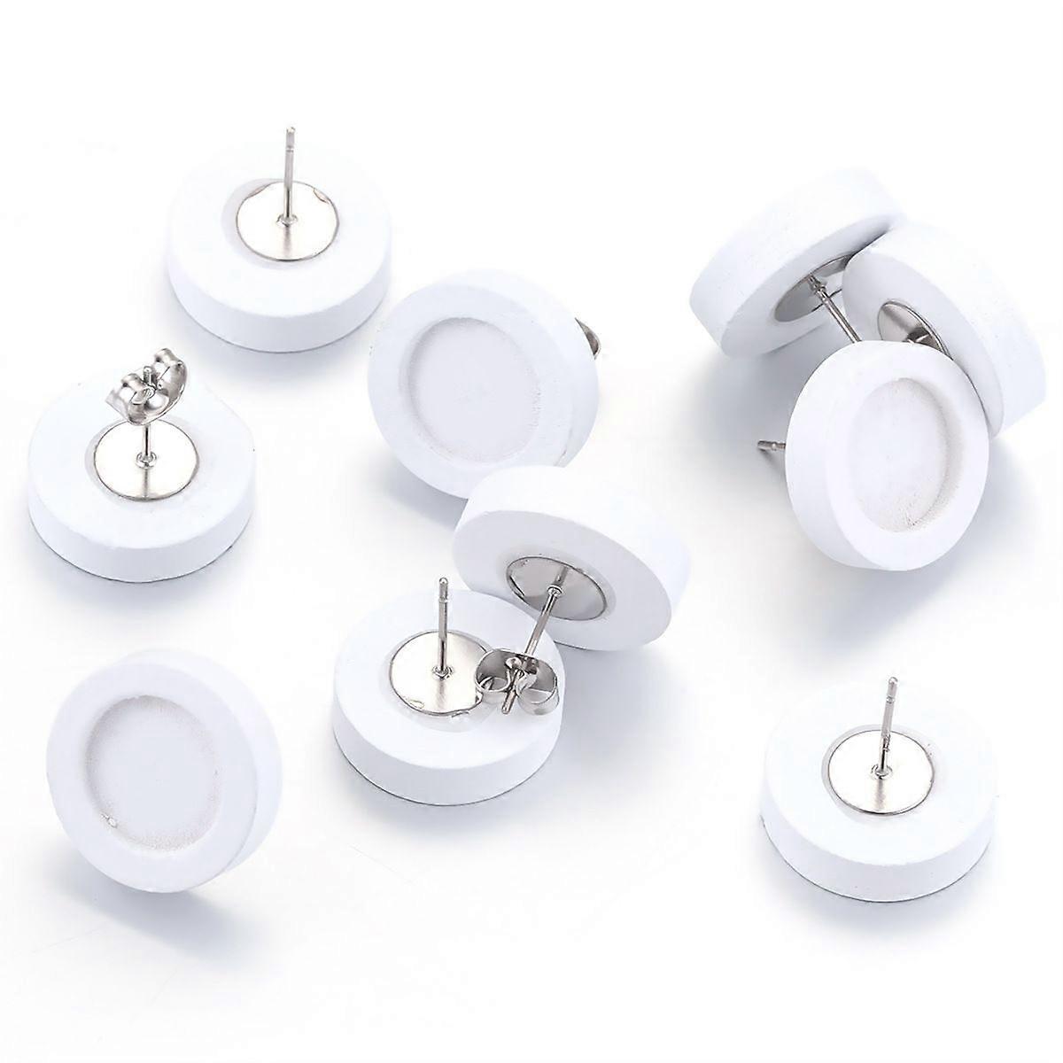 20pcs Wood Stud Earring Blanks: 12mm Cabochons Settings Round Wooden Earring Posts Back Stopper Diy Base Stainless Steel Bezel Blank For Jewelry Makin