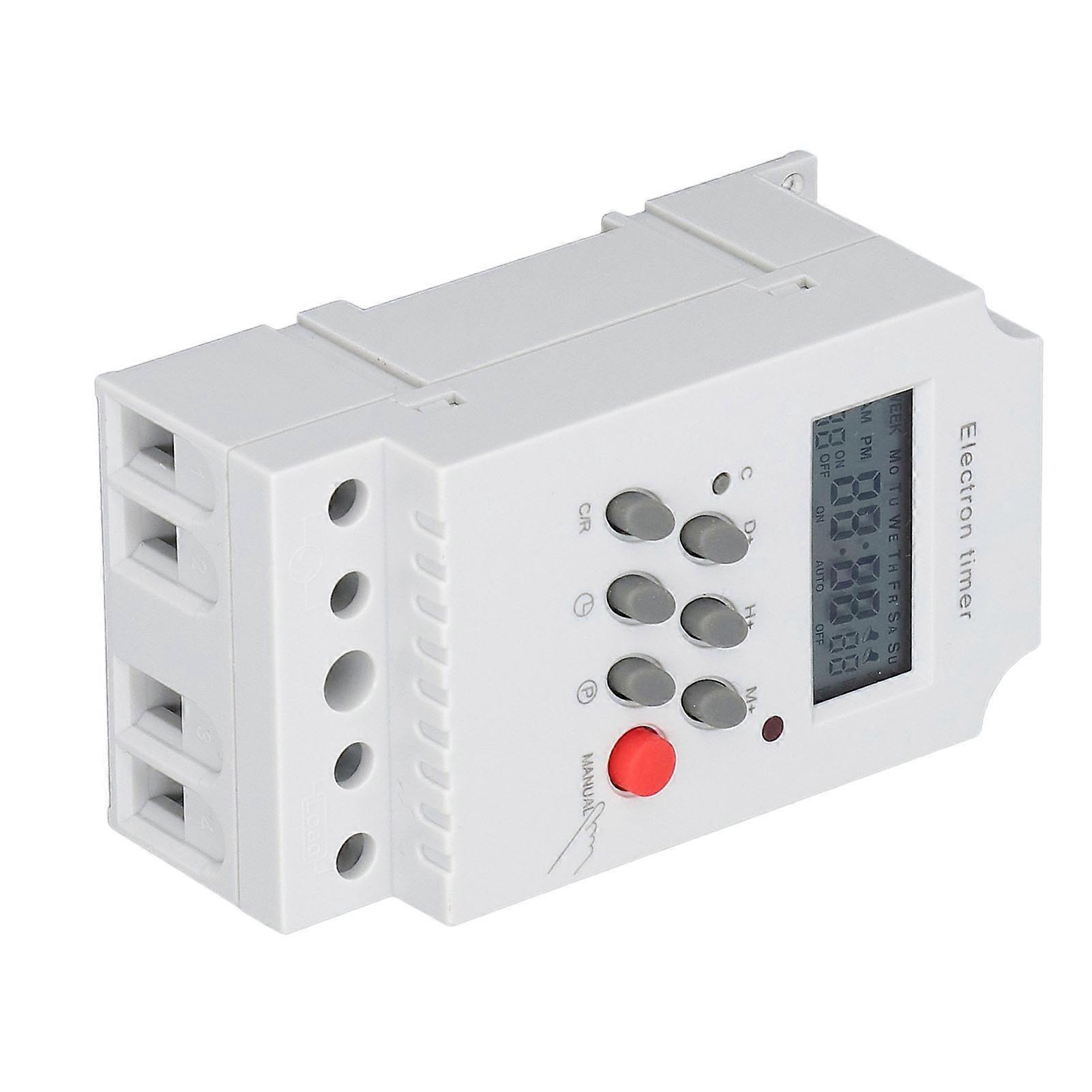 Features: 1.DIGITAL ELECTRONIC TIMER SWITCH: The timer switch can be turned on and off regularly, allowing your home appliances to work reasonably and prolong the service life 2.POWER OFF MEMORY: The built in battery of the timer switch is used for program power off memory, even if the power is off, it can save 60 days of data without resetting the fixed switch program 3.WIDE RANGE OF APPLICATIONS: Suitable for timing control of street lights, advertising lights, electric boxes, water pumps, drain pumps, water heaters, chargers and other equipment 4.PA66 MATERIAL: Made of Pa66 material, have strong impact resistance, corrosion resistance, and high temperature resistance 5.CLEAR LCD DISPLAY: LCD display is clear and easy to read, power reserve for 60 days, you can use with confidence Specification Item Type: Electronic Timer Switch Model: KG316T-II Material: Pa66 Built In Battery: Ni-MH battery 1.2V 40mAh Error Correction: 1 Second/day (25℃) Power Consumption: ≤2W On or Off Operation G: 16 on or off Service Life: MECHANIAL 10⁷ ELECTRICALLY 10⁷ Display: LCD Minimum Interval: 1 Minute Power Reserve: 60 Days Ambient Temperature: -10 to +40℃ Environmental Humidity: 35x85%RH Package List 1 x Electronic Timer Switch<br>