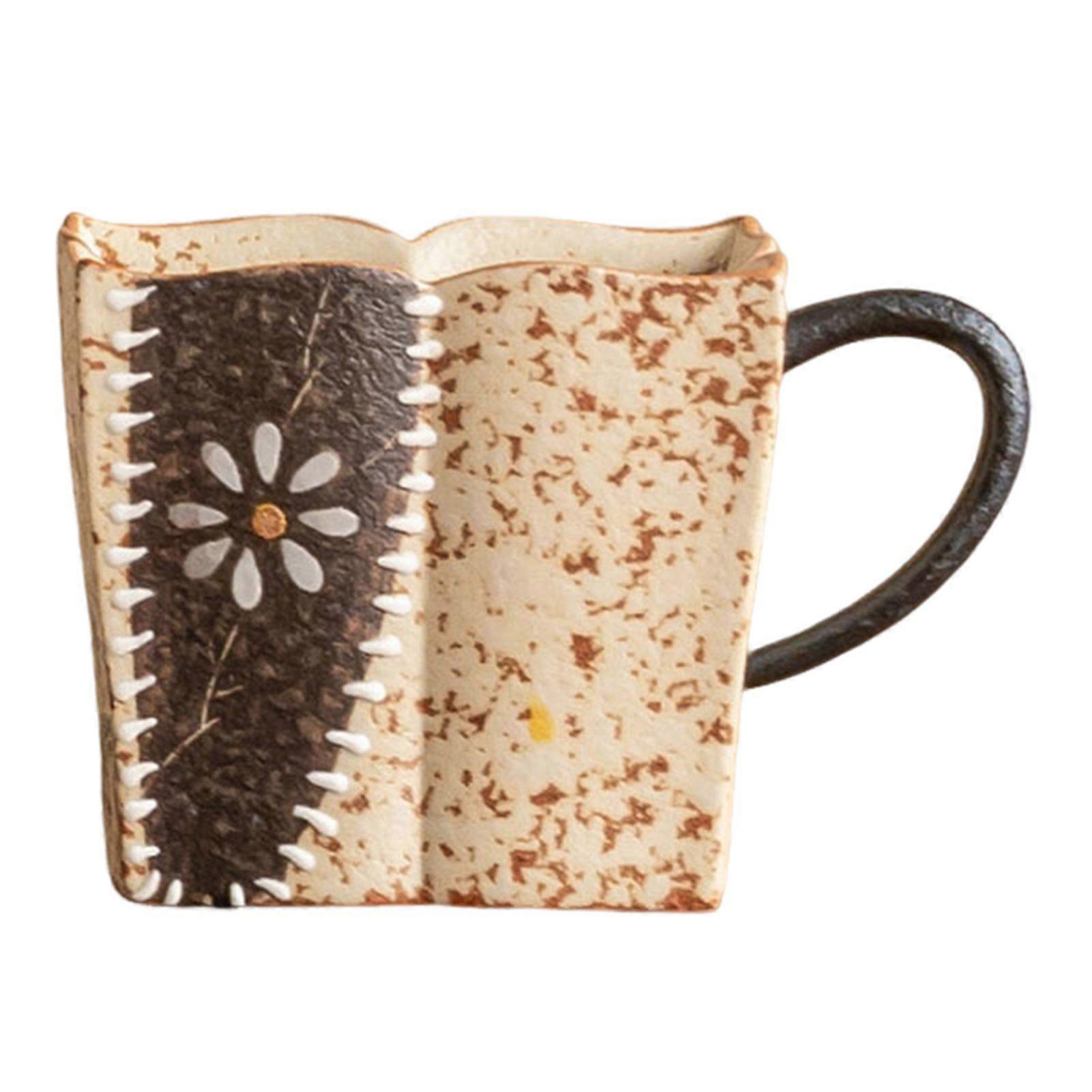 Daisies Porcelain Tea Cup Square-Mug Bowl for Pu'er Hand-made Afternoon Tea Cup for Tea Lovers