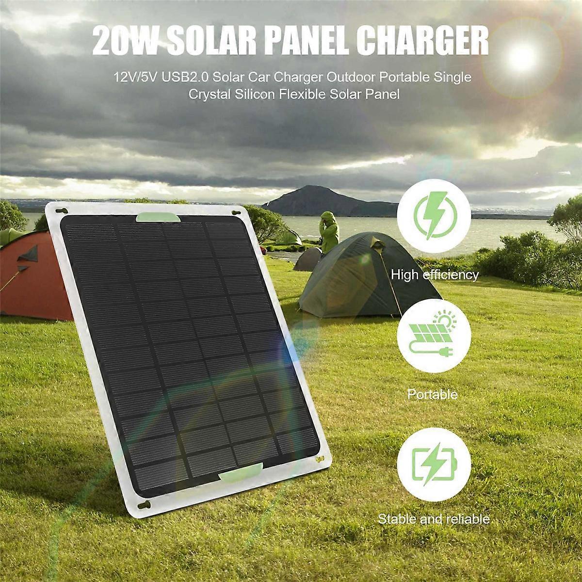 2X 20W Solar Panel 12V/5V USB2.0 Solar Car Charger Outdoor Portable Monocrystalline Silicon Flexible