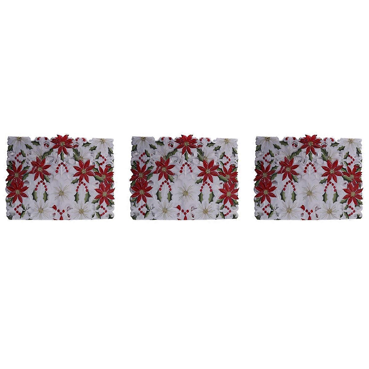 3X Christmas Embroidered Table Runner, Luxury Holly Poinsettia Table Runner for Christmas Decoration