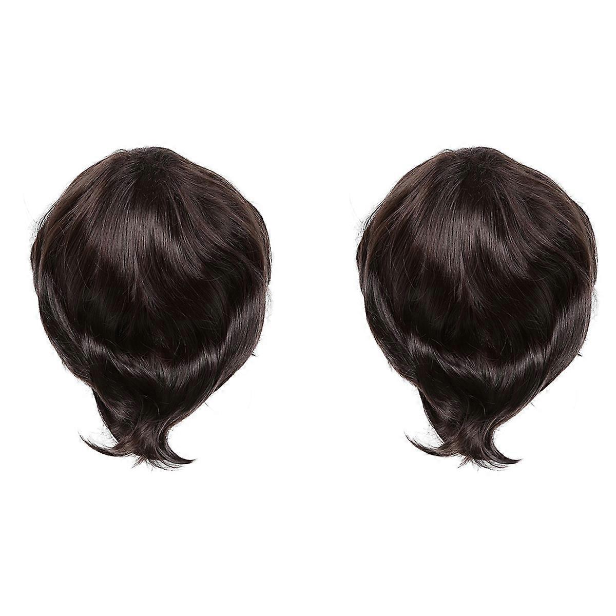 2X Fashion Men'S Wig Short Straight High Temperature Silk Synthetic Wig Full Wigs/Artistic Men Brown