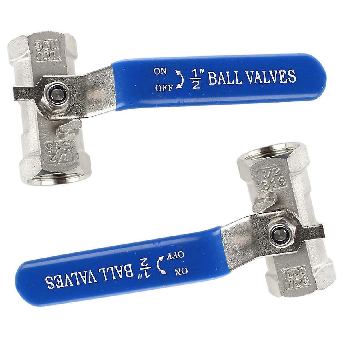 2X 1/2 Inch Lever Female/Female Ball Valves Long Handle 316 Stainless Steel Wog1000