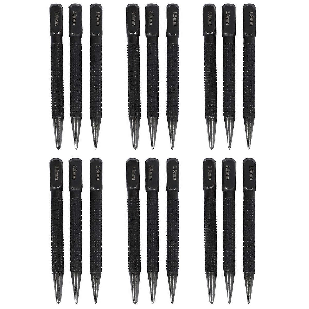 and high quality Material: High-carbon steel Color: Black Length: . 10cm/3.93 inch Head Size: 1.5mm,2mm,3mm/0.059 inch,0.078 inch,0.11 inch Quantity: 18pcs Use of advances played a small dot on the workpiece, as a marker (such as central or circumferential line when drilling), or other point of the center line position, to facilitate processing. Suitable for proofing hole before steel, aluminum, copper and other materials drilling of drill positioning, to avoid direct drill drilling position deviation cause slippage or damage to the drill bit. Package Contents: 18x Center punch Only the above package content, other products are not included. Note: Light reflection and different displays may cause the color of the item in the picture a little different from the real thing. The measurement allowed error is +/- 1-3cm.