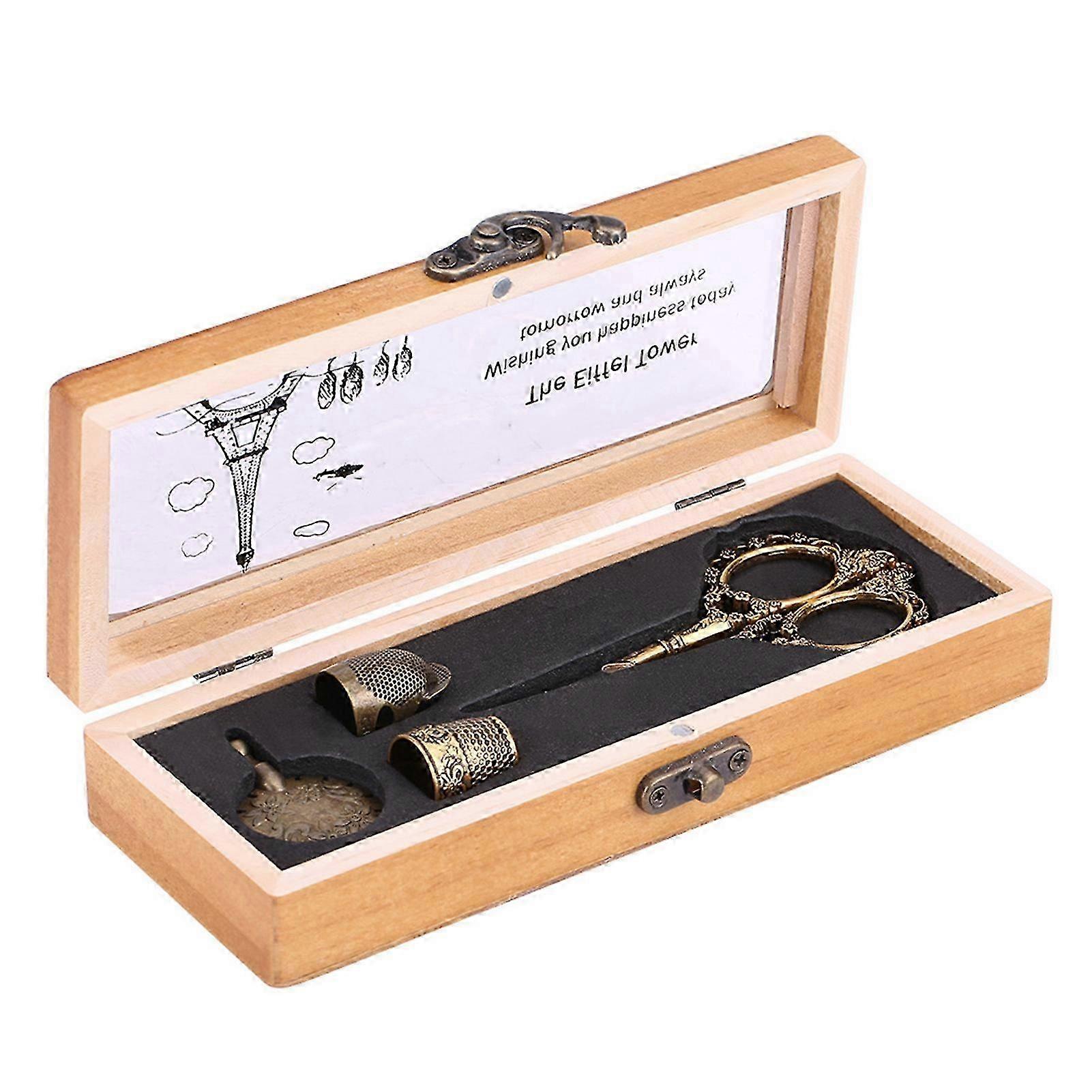 ZENGO Vintage Metal Scissors Thimbles Thread Cutter Portable Sewing Tools with Box