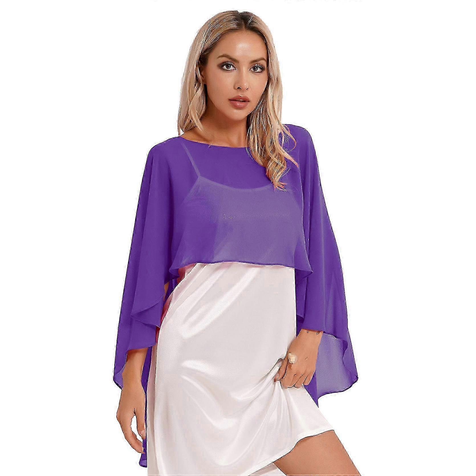 Globa Shop Womens Soft High Low Shawl Wedding Capes Shrug Bridal Wraps Evening Wedding Cover Up One Size purple