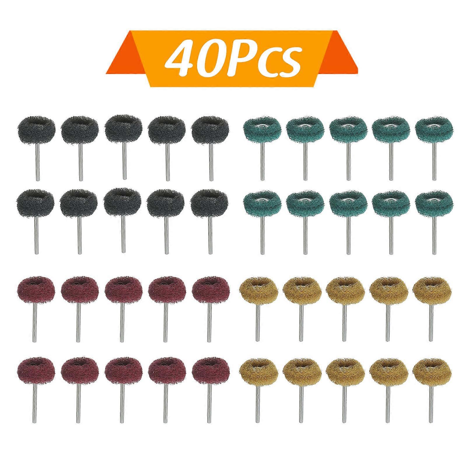 40Pcs T Type Mini Polishing Wheel with Handle Nylon Fiber Buffing Wheel Multifunctional Grinding Head Rotary Tool Accessories for Metal Wood Jewelry