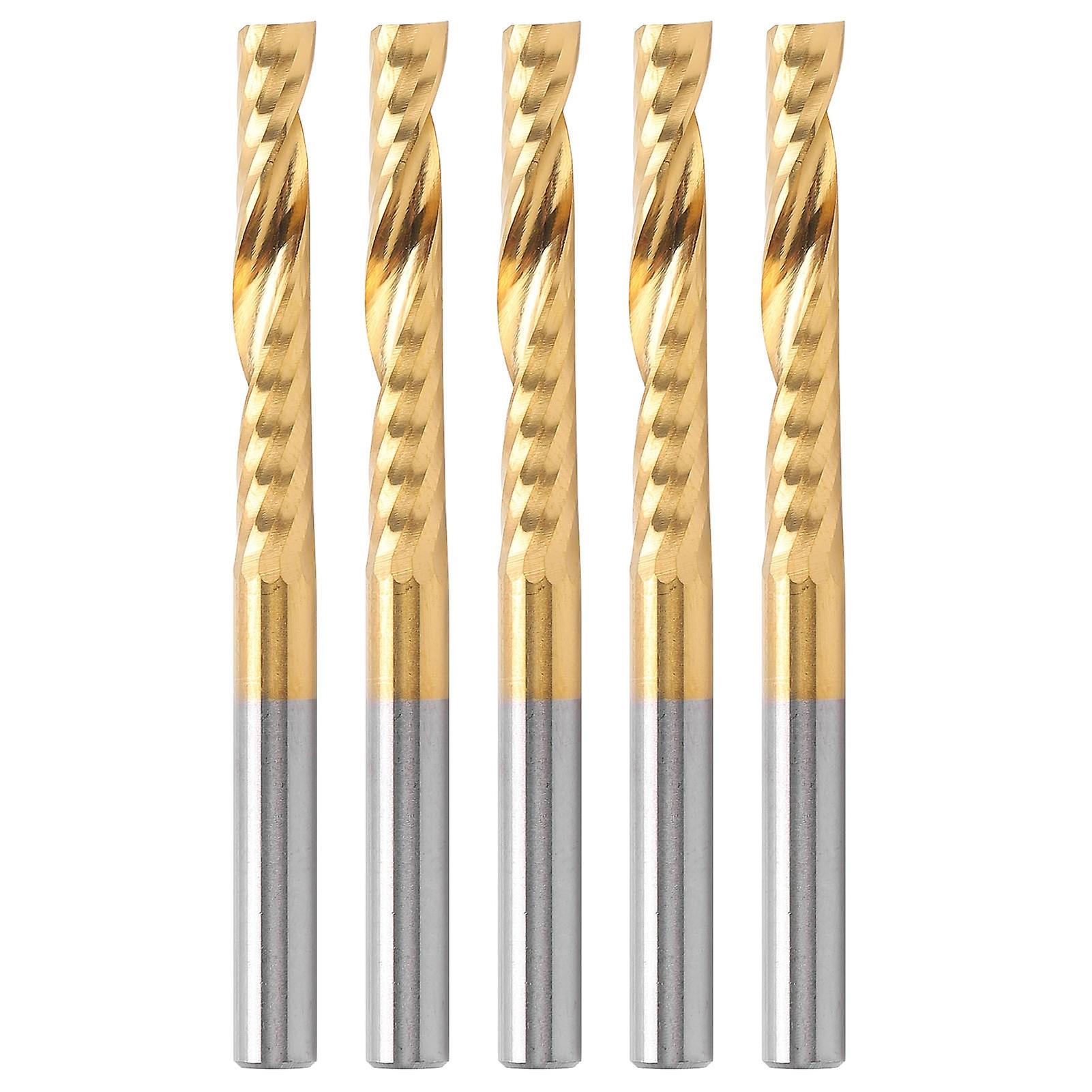 5Pcs CNC End Mill 1 Flute TiPlated Spiral Router Bit High Speed Steel 4x22x50mm for Wood Plastic Acrylic Milling Cutter
