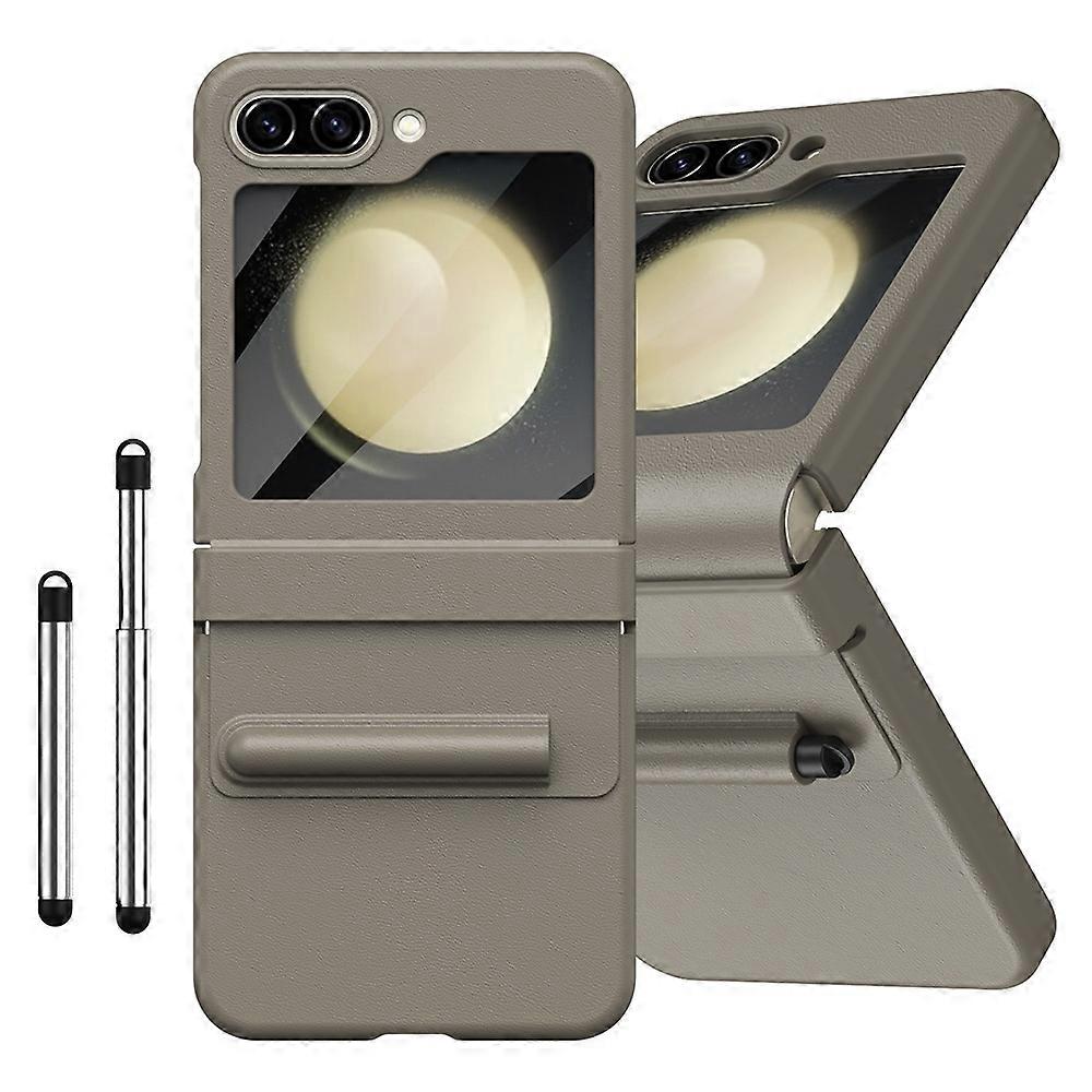 For Samsung Galaxy Z Flip7 FE 5G Flip6 5G Hinge PU Leather PC Phone Cover with Stylus Tempered Glass