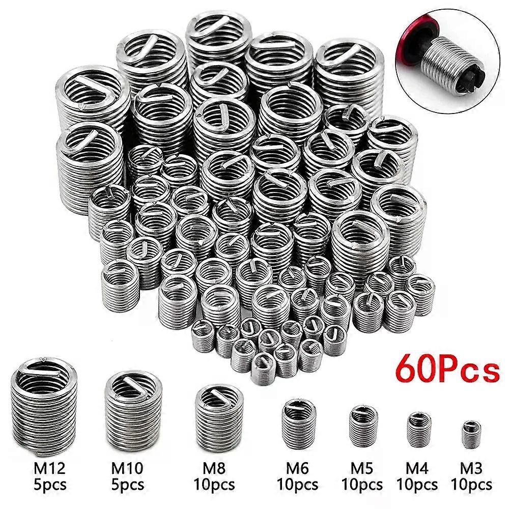 60Pcs Wire Thread Insert M3 M4 M5 M6 M8 M10 M12 Fastening Thread Insert Stainless Steel Spiral Wire Screw Sleeve Wear Repair Kit