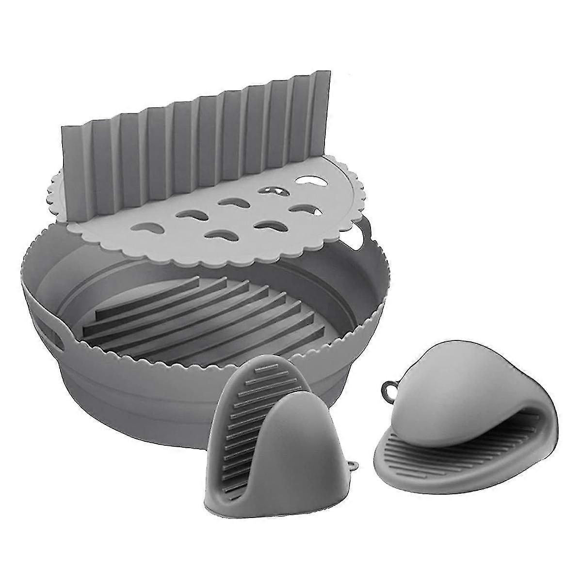 QUALITY ASSURANCE: Our high-quality food grade Silicone Air Fryer Liners & can withstand temperatures up to 240 C / 464 F. Compatible with Air Fryers ranging from 3.6L to 7.2L. Compared to disposable parchment paper, our product is reusable and economical, enabling a quick & to prepare delicious meals while protecting your Air Fryer. EASY COOK & CLEAN: Our Air Fryer Liner is reversible, flexible and non-stick, allowing you to turn the silicone pan over to disperse of food scraps and oil. After cooking, simply wash by hand or place it in the dishwasher - cleaning your air fryer has never been so easy! UNIQUE DESIGN: Unlike others, our liner includes a carefully designed divider to allow you to cook different food types in the same liner. Our collapsible Air Fryer Liner is also designed to save space when not in use. We have added an oil filter pad at the bottom of the divider to raise food above grease/oil, without affecting the air circulation inside the air fryer - enjoy crispy & tasty meals! WIDE APPLICATION: Our 8.46inch Air Fryer Liners are not limited to air fryers, but can also be used for microwave cooking, baking, oven cooking, or as a serving tray to hold food for gatherings with family and friends - their multifunctional makes our liners a kitchen staple! Color: Gray Material: Silicone Package Contents: 1 set Air Fryer Liners Only the above package content, other products are not included. Note: Light reflection and different displays may cause the color of the item in the picture a little different from the real thing. The measurement allowed error is +/- 1-3cm.