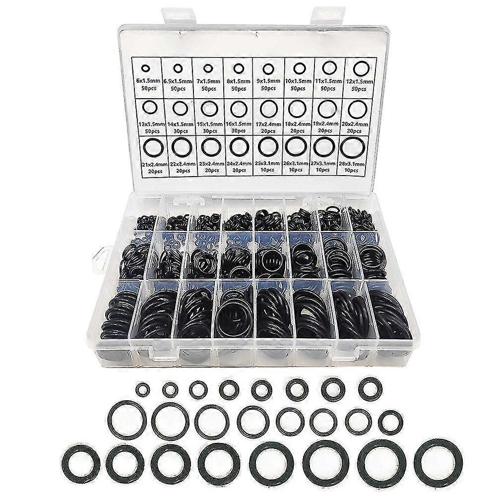 material: O-rings are made of high-quality commercial nitrile rubber (NBR, Buna-N), with good water resistance, oil resistance, heat resistance, sealing, corrosion resistance, abrasion resistance, and antistatic properties , To meet the needs of safe and durable use. of Models: Universal O Ring buna kits, mechanic nitrile repairs, essential for all workshops and onsite service engineers. have 24 different models to meet your needs, Sizes range from 6mm to 28mm in outer diameter. Wide Applications: have heat resistance: -40C (-40F) to 120C (248F) and are strong and ductile. Therefore NBR O-rings can prevent leakage in fuel or water pipes, hydraulic and pneumatic connections, and a safe seal for any oil, air, gas and water sealing applications (faucets, sinks, ); used in electronic equipment , Pipes, faucets, pumps, solenoids, pressure gauges, sensors, autos, motorcycles, ships, engines, spray , etc. Convenient Storage and Use: 740 pieces of NBR rubber O-rings are stored in a sturdy, transparent plastic box with a label, and the required size can be easily , eliminating the of sorting and selecting the size. Abundant types and sufficient quantities can allow you to use enough time. Colour: black Material: nitrile rubber Package Contents: 50 x 6 x 1.5mm O-rings 50 x 6.5 x 1.5mm O-rings 50 x 7 x 1.5mm O-rings 50 x 8 x 1.5mm O-rings 50 x 9.0 x 1.5mm O-rings 50 x 10 x 1.5mm O-rings 50 x 11 x 1.5mm O-rings 50 x 12 x 1.5mm O-rings 50 x 13 x 1.5mm O-rings 30 x 14 x 1.5mm O-rings 30 x 15 x 1.5mm O-rings 30 x 16 x 1.5mm O-rings 20 x 17 x 2.4mm O-rings 20 x 18 x 2.4mm O-rings 20 x 19 x 2.4mm O-rings 20 x 20 x 2.4mm O-rings 20 x 21 x 2.4mm O-rings 20 x 22 x 2.4mm O-rings 20 x 23 x 2.4mm O-rings 20 x 24 x 2.4mm O-rings 10 x 25 x 3.1mm O-rings 10 x 26 x 3.1mm O-rings 10 x 27 x 3.1mm O-rings 10 x 28 x 3.1mm O-rings Only the above package content, other are not included. Note: Light and different displays may cause the color of the item in the a little different from the real thing. The measurement allowed error is +/- 1-3cm.