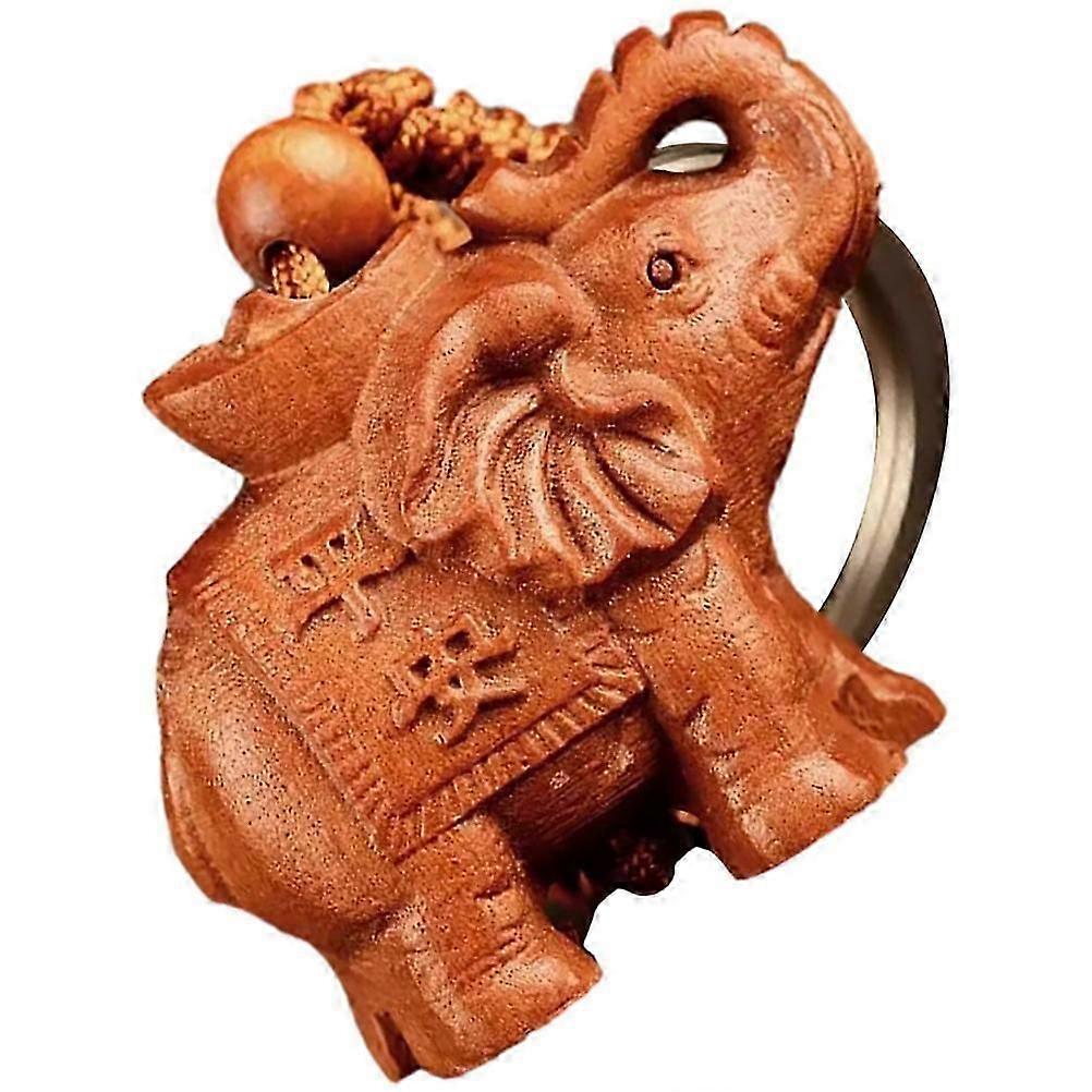 Animal Keychain Pendant Peach Wood Elephant Shape Key Ring Hanging Pendant 2.01.21.2in 1Pack
