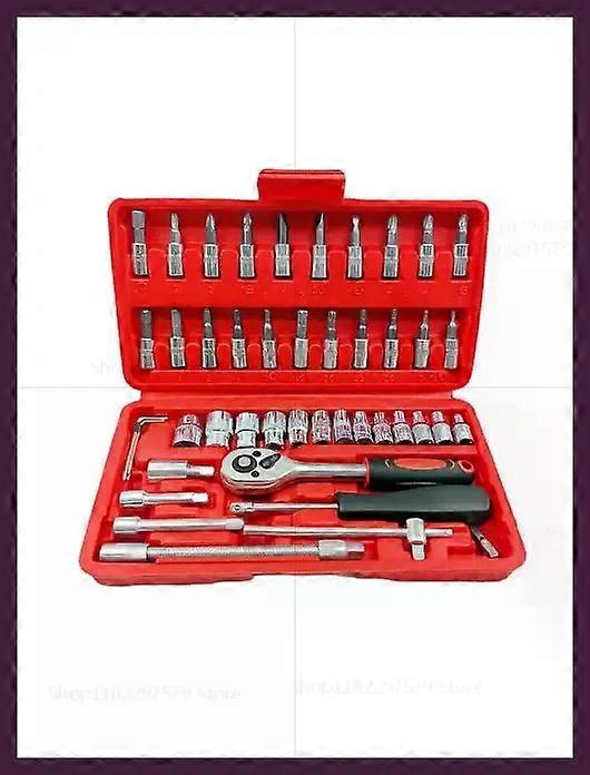 46PCS Socket Wrench Set DIY Repair Tool Kit Ratchet Screwdriver for Car Auto Household Garage Hardware Toolbox
