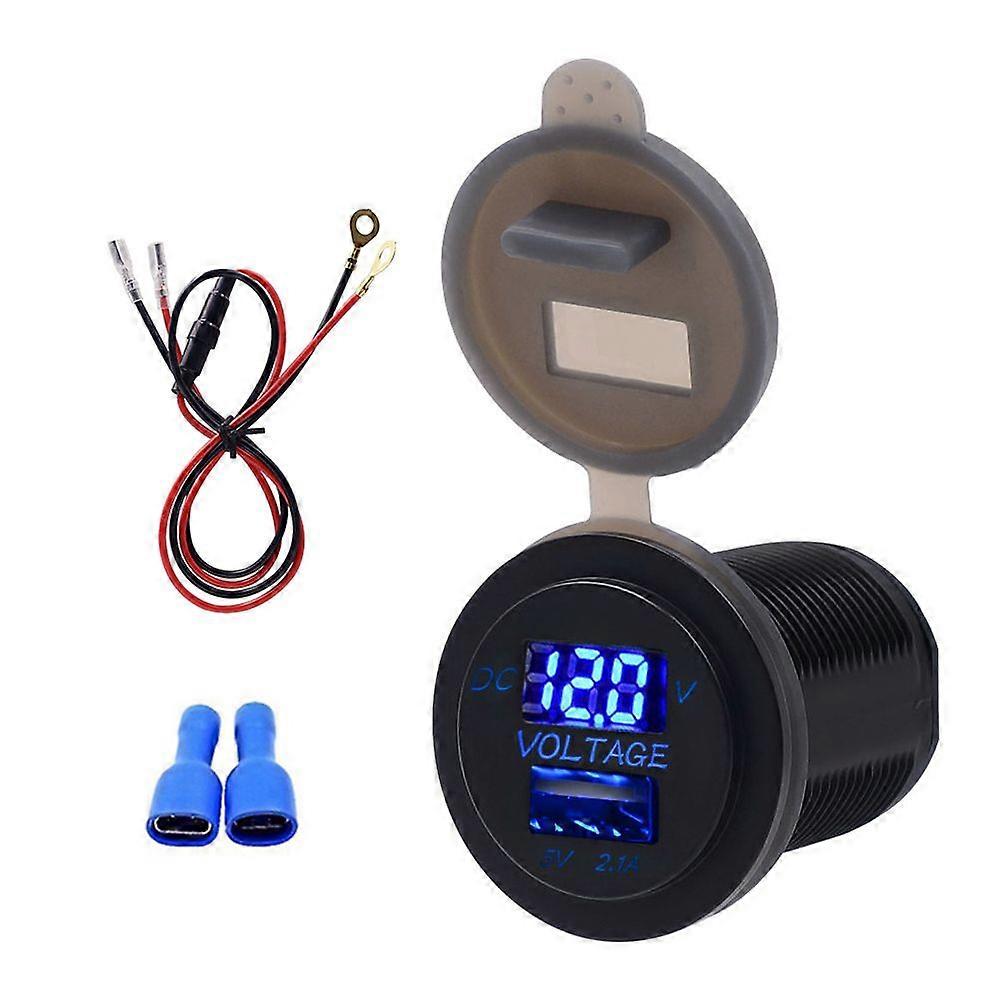 Car charger with USB ports and voltage display IP66 waterproof 2.1A DC12-24V