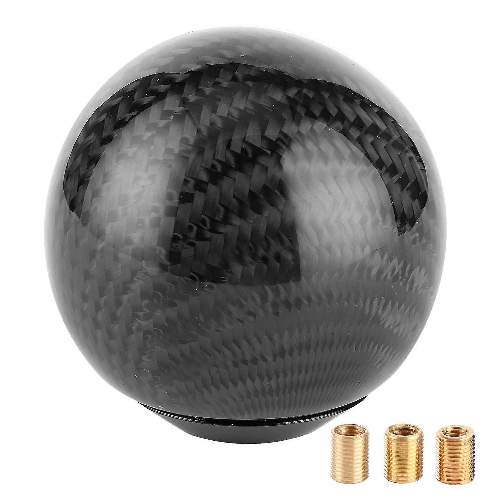 1Car gear shift knob, round ball design, easy to grip and shift, excellent hand feeling. 2Equipment with 3 kinds of threaded adapters, M8x1.25 / M10x1.25 / M10x1.5. 3Black carbon fiber style, with smooth and clear texture, make car cool and fashionable. 4Made of high?quality carbon fiber and aluminum materials, durable and reliable in use. 5It can directly replace the old or damaged shift knob, can be used in various models.