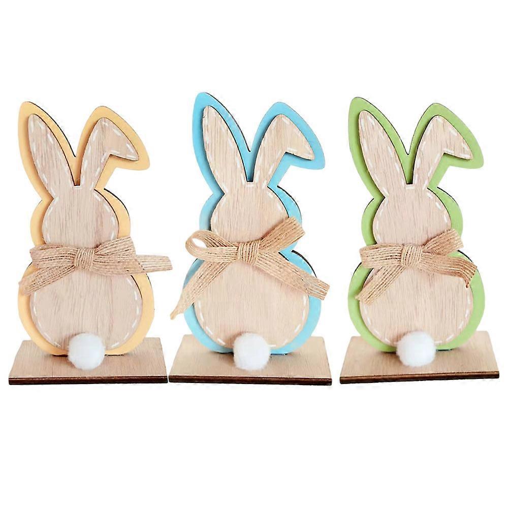 Wooden Bunny Adorns Easter Bunny Ornament for Home Decor 3Pcs