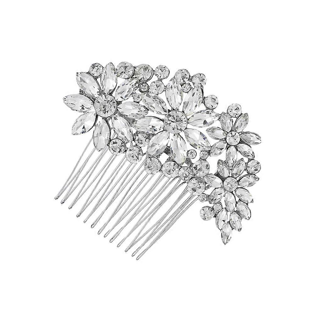 This bridal hair comb is made of alloy and beautiful crystal with of plating color. This designed hair comb is a perfect alternative for headpiece such as crown, tiara or headband. Great for bride, bridesmaid, flower girls or wear it to a party. Feature - Color: Silver. - Material: Alloy. - Size: about 8x6x1cm. - Designed for versatility, this wedding hair accessory can be adorned in an updo or can be worn to delicately frame a half up and down hairstyle. - This wedding hairpiece looks gorgeous in almost any wedding day hair style. - The wedding hair accessories are suitable for any wedding party theme. Special for wedding, party, prom, party, engagement, anniversary or other special occasions. - Handmade hair combs accessories for brides and bridesmaids, available in beaufiful color. - Delicate crystal brings you a unique sense of beauty, leaving a deep impression. Package list: 1 x Bridal Hair Comb