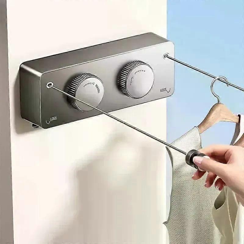 Retractable Double Lines Clothesline Laundry Extendable Wall Rope Rack Balcony Stainless Steel Pull-Out Clothes-Drying Rope