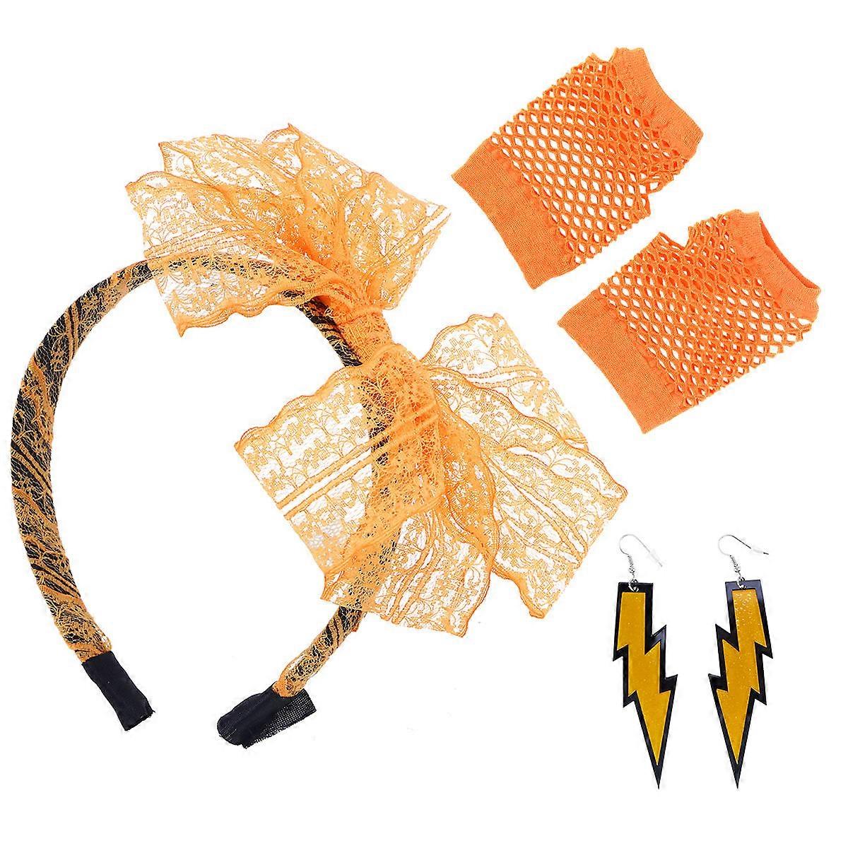 Retro Accessory Set Including Headband,Earrings,and Gloves for 80s Dress Events