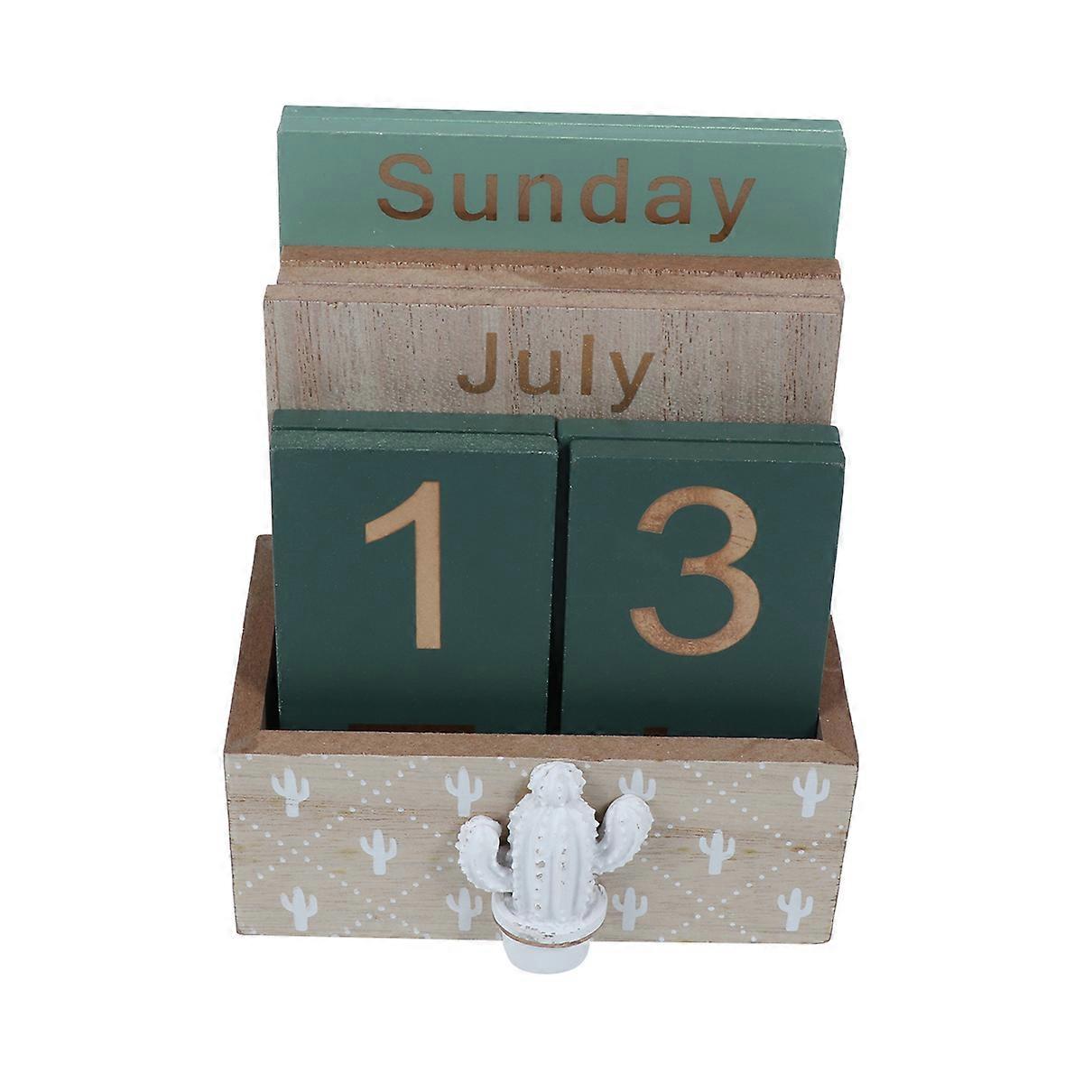Desktop Calendar Wood Block for Cafe Restaurant Canteen Decorative Piece with Date Blocks for Desk 1Pack