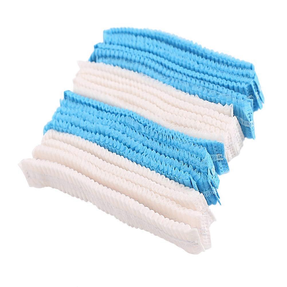 200pcs Disposable Caps Nonwoven Hoods Hats for Workshop Catering Food Baking (Blue and White)
