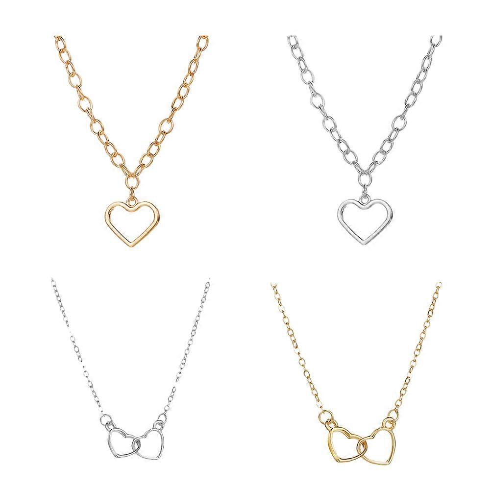 Heart Necklace Jewelry for Decoration 4Pcs Double Heart Neck Necklaces