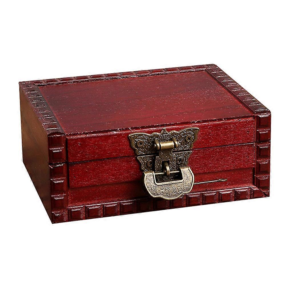 Durable Dark Red Retro Jewelry Box with Lock for Jewelry Storage and Organization 6.5x4.5x3.5 Inch