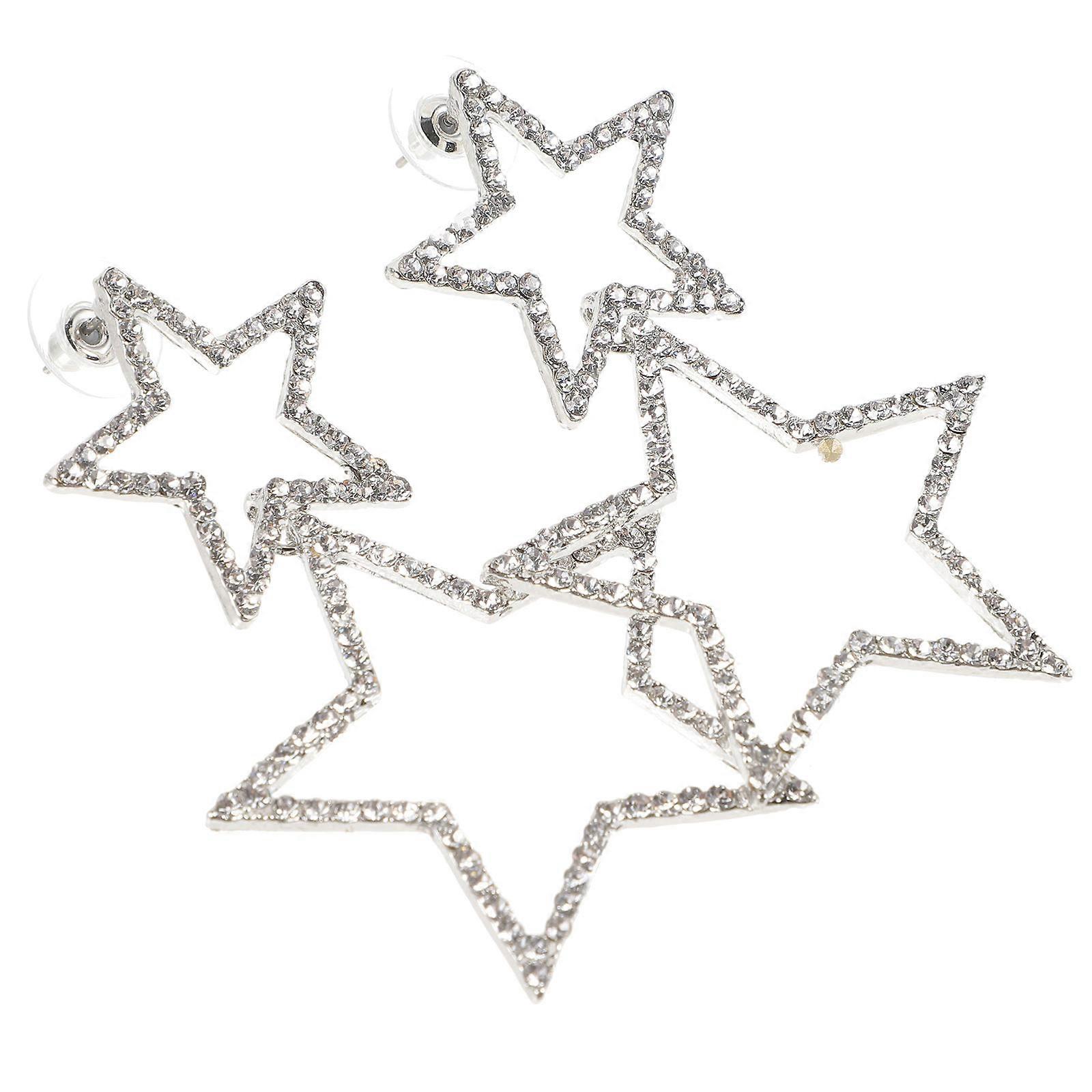 Surprise your girlfriend, wife, mother, and friends with these unique and beautiful earrings. The star earrings are very distinctive, with rhinestone decor. Easy to wear, don't worry about falling off, and suitable for daily, dating, parties, and other occasions. Features -Color:Silver -Material:Alloy -Size:6.20X4.00X1.50cm/2.44X1.57X0.59in -These star earrings are very distinctive and decorative, delicate design, rhinestone decor. -The earrings are classic in design and very delicate, suitable for ladies, women, and young girls. -The dangle earrings are easy to wear, don't worry about falling off, easy to match with various makeup and clothing. -Safe and comfortable, the lightweight earrings can be worn even by ears. -The dangle earrings can be great your girlfriend, fiancee, wife, mother, and friends. Package list: 1 Pair x Rhinestone Star Earrings