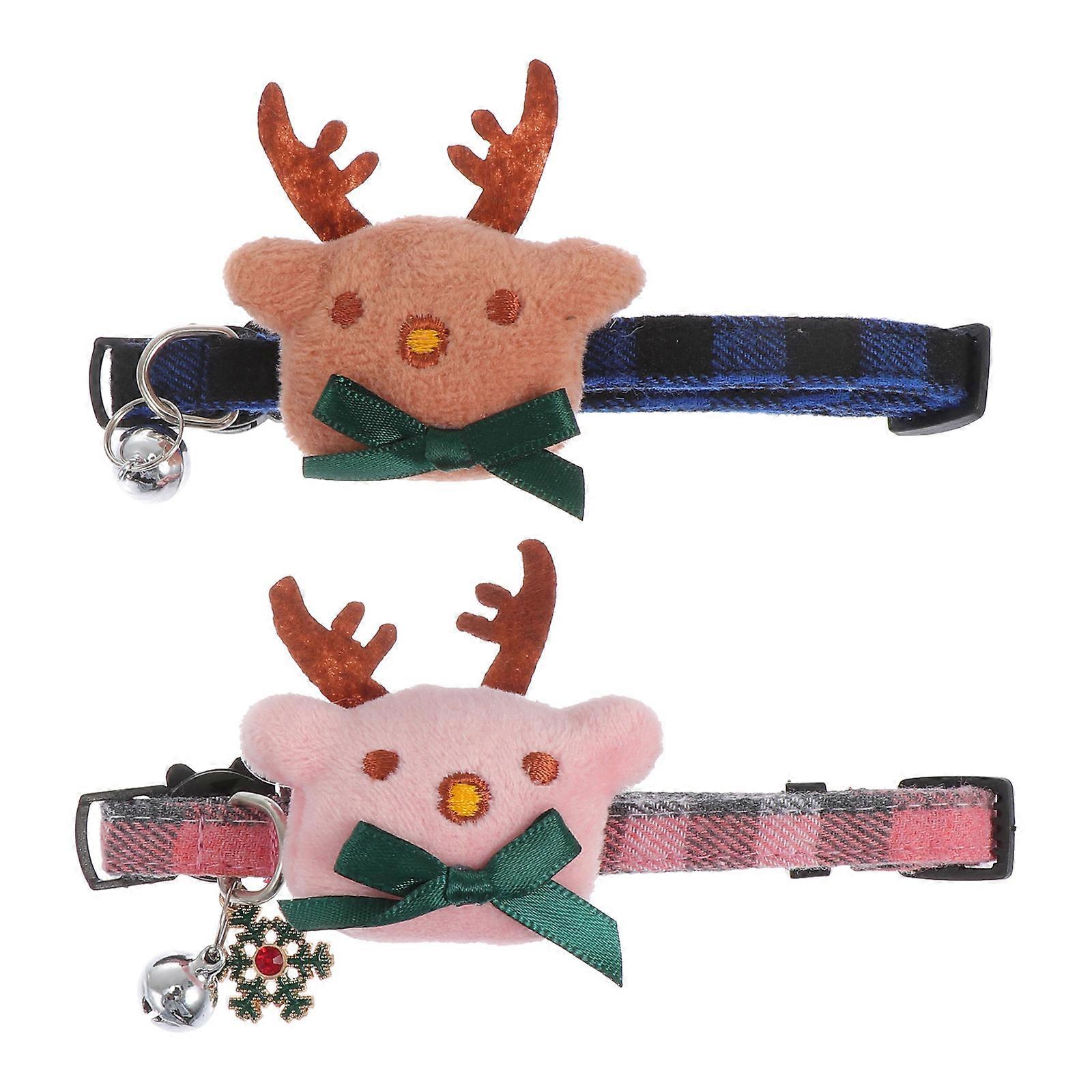 Christmas Pet Collar Adjustable Cotton Cat Dog Collars 2Pcs with Bowknot