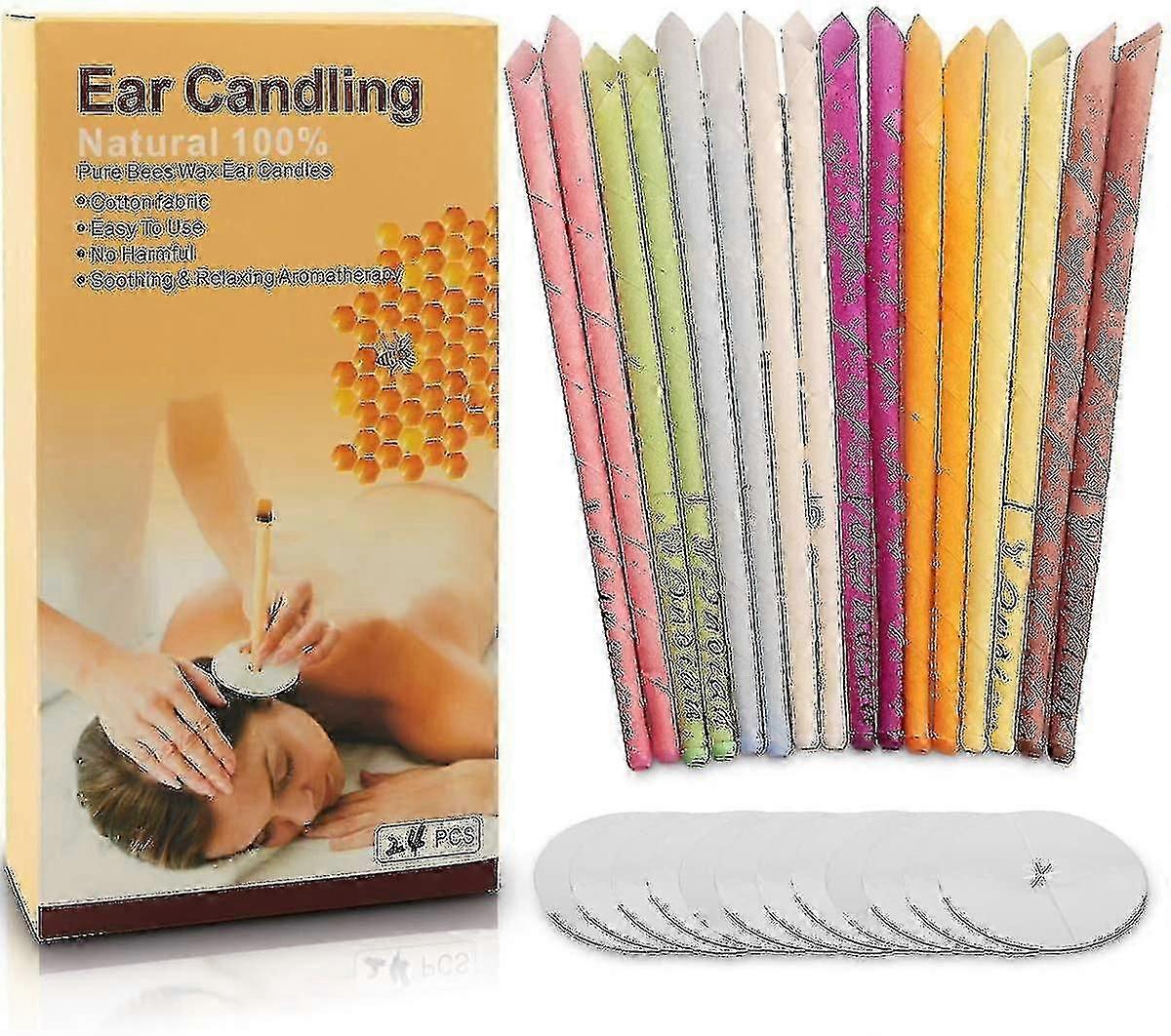 24pcs Hollow Cone Ear Candles Natural Beeswax Non-toxic