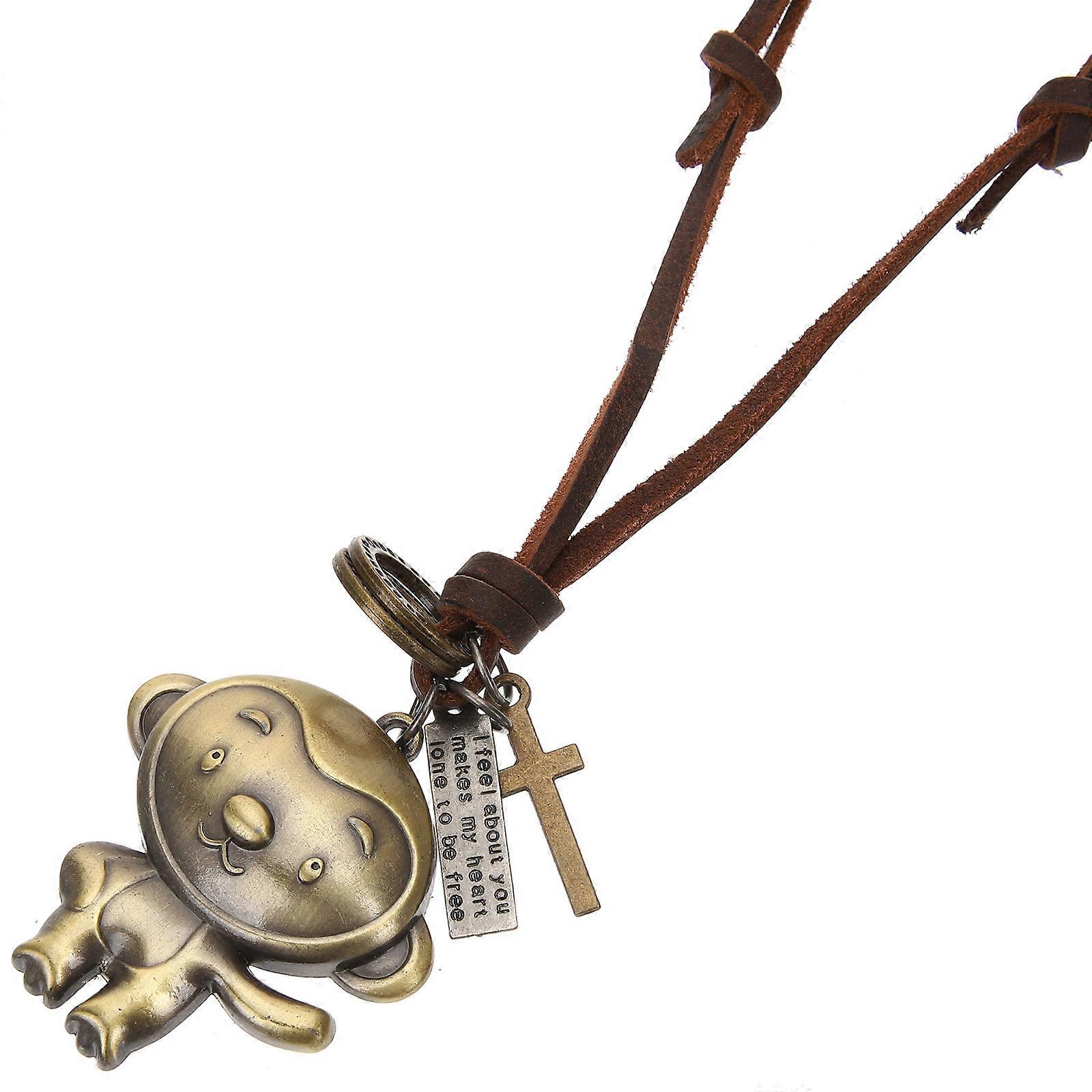 Monkey Pendant Necklace for Decoration Brown Cord Sweater Necklace