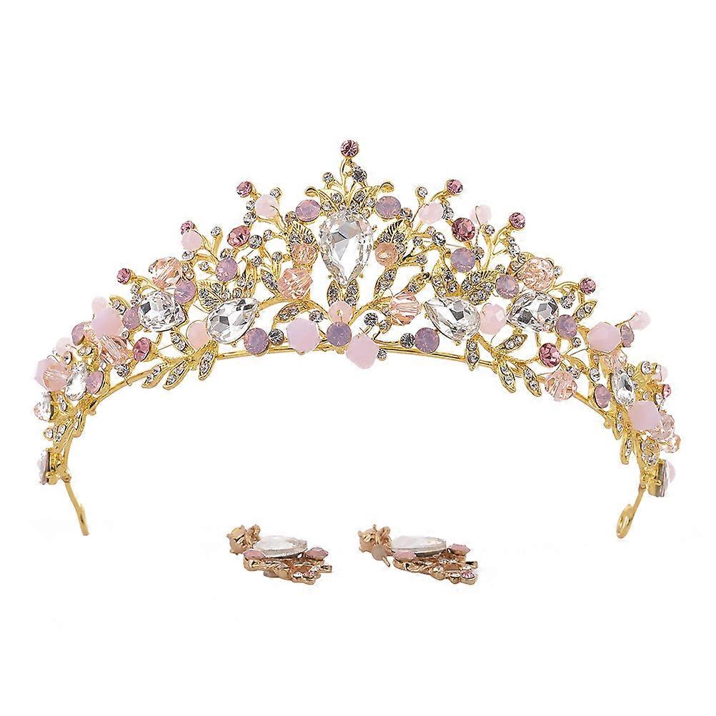 Elegant Earrings Bridal Wedding Hair Crown for Decoration Pink