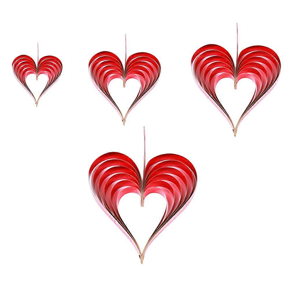 Red Heart Shaped Hanging Decor for Wedding Ceremony Set of 4Pcs